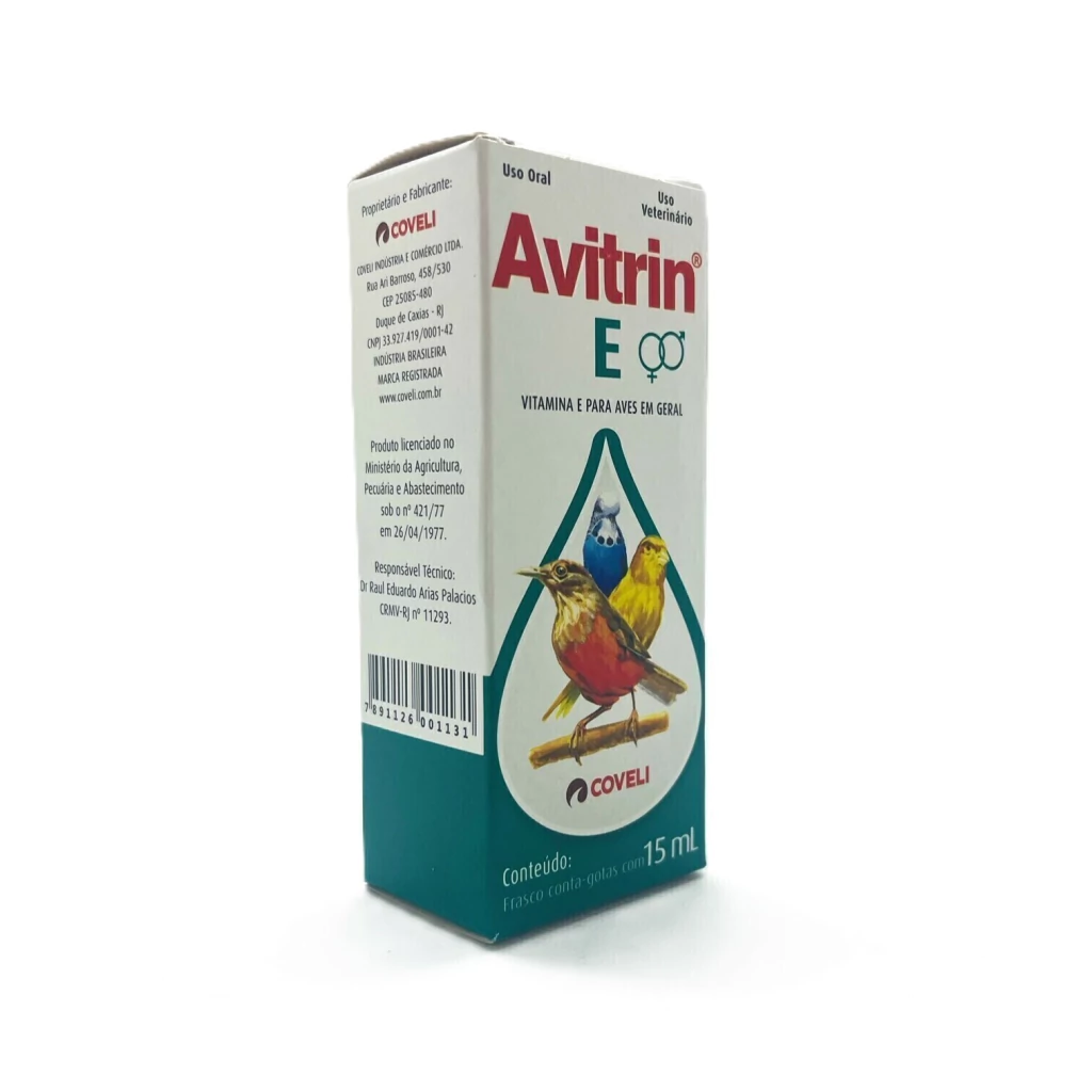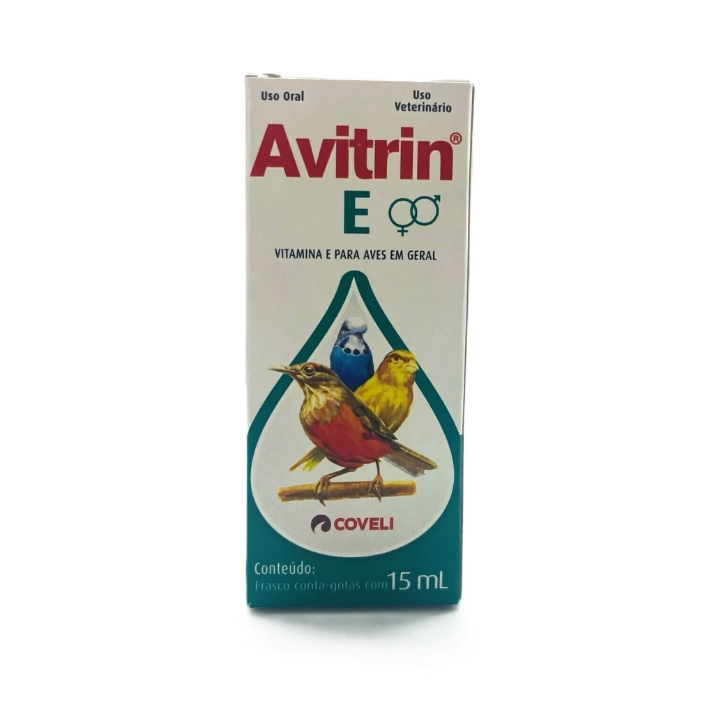 Avitrin E aumenta cerca de 30% a reprodutividade de pássaros (machos e fêmeas). Fortalece os embriões, prevenindo a mortalidade. Pode ser administrado o ano inteiro para estimular o sistema imunológico. É indicado na profilaxia e correção das carências desta vitamina em aves em geral, determinadas pela pobreza da alimentação por falta de verduras verdes suficientes ou grãos vegetais frescos, cujos principais sintomas são: defeitos na reprodução, com degeneração embrionária (baixa fecundidade dos ovos, os embriões morrem nos primeiros dias de incubação); infertilidade (baixa produção dos machos reprodutores); degeneração muscular com distrofia muscular (afetando as aves jovens); degeneração de cerebelo (encefalomalácia); diástase exsudativa (ederma do tecido subcutâneo associado ao aumento da permeabilidade capilar, principalmente nas crias); degeneração com destruição da parede sanguínea e da gordura orgânica armazenada pelo animal.